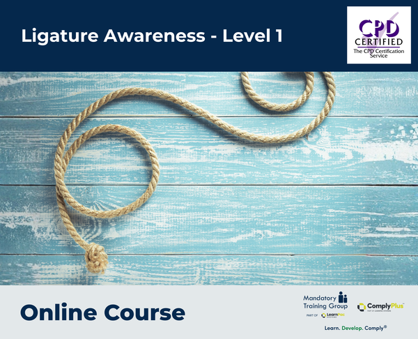 Ligature Awareness training course provides health and social care staff with essential knowledge to identify, assess and manage ligature risks. It covers ligature points, environmental safety, incident response, safeguarding responsibilities and compliance with CQC and NICE NG105 suicide prevention guidance.